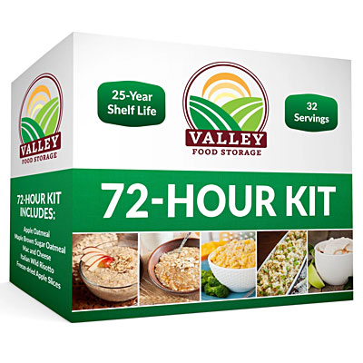 The Valley Food Storage 72-Hour Emergency Food Kit provides you with 1,800 calories per day for 3 days.