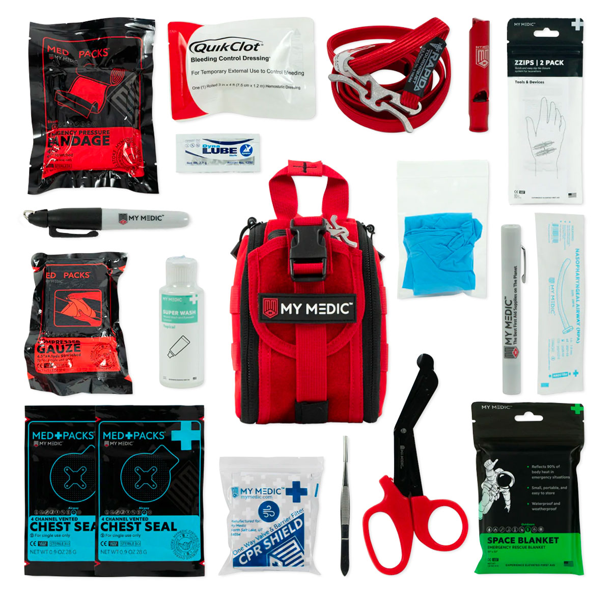 It's a little bit larger than the MyMedic FAK and doesn't have some of the trauma equipment, but is a better choice for those not super familiar with first aid equipment and gear. All the items are laid out and labeled in a way that makes them easy to find when time is of the essence.